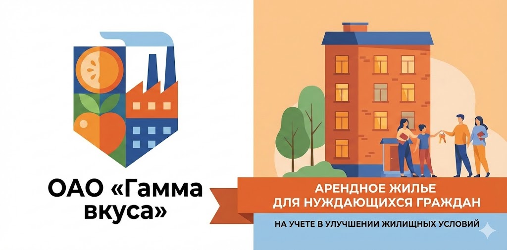 ОАО «Гамма вкуса» информирует о наличии арендного жилья, предоставляемого гражданам, состоящим на учете нуждающихся в улучшении жилищных условий, в случае отсутствия таковых - гражданам, не состоящим на таком учете, расположенного по адресу: